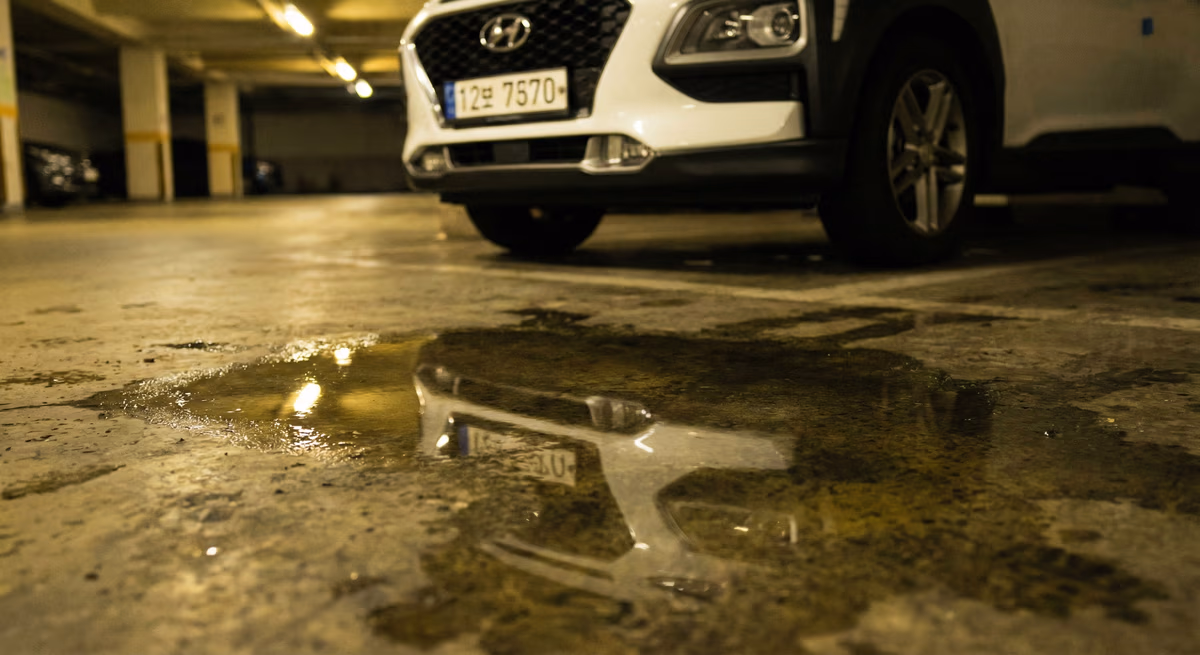 첫 차로 2024년형 캐스퍼를 샀는데, 오늘 지하 주차장에 세워두니 차 밑으로 맑은 물이 뚝뚝 떨어져 있어요. 만져보니 기름 냄새는 안 나는데 이거 고장 난 건가요? 무서워서 시동도 못 켜겠어요. 견인차 불러야 하나요?