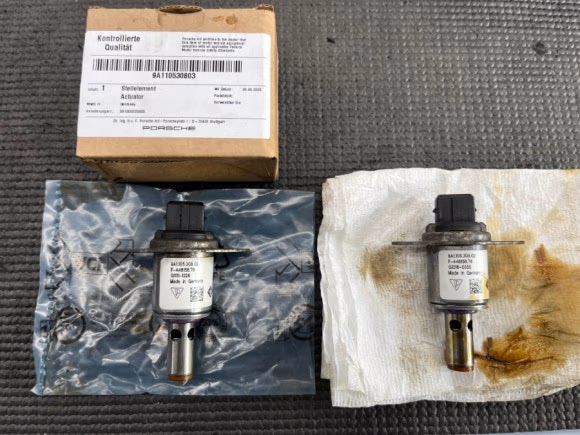 점화 코일 사이에 장착되어있는 유압 솔레노이드 밸브인데요